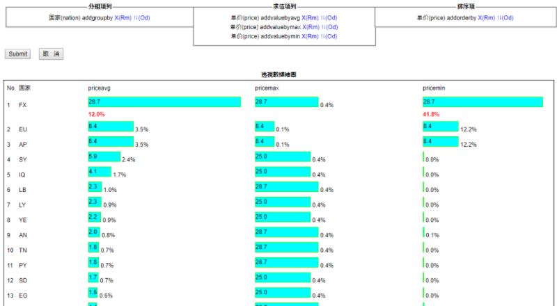 整體上, 條形圖表示相應的比值, 其中最大的比值將沾滿窗口, 其餘的依比例遞減.這一圖示化數據功能將更加直觀和生動的展示數據變化趨勢, 鮮明地呈現數據對比效果, 為決策支持提供多一種感官體驗.