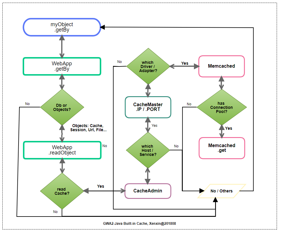 在此之前,按圖1.的標志,内置緩存只在數據對象讀取時發生作用,也即在 inc/WebApp.getBy/execBy 時生效,對於寫入、更新操作 inc/WebApp.setBy/execBy 時,無需調用相應的緩存功能模塊,因爲寫入數據無需進行緩存。